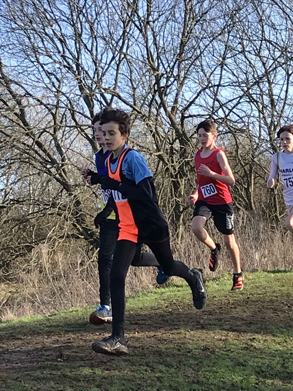 In the Under 13 girls’ race, Esme Searle finished in 7th position, with Hannah Cook 12th, Jane Griffin 13th, and Gracie Hall-Watts 15th. This keeps the team in bronze medal position overall.